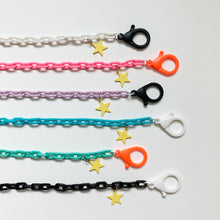 Contrast color combination mask straps with a matte yellow star pendant is to conveniently keep your masks around your neck when not in use.